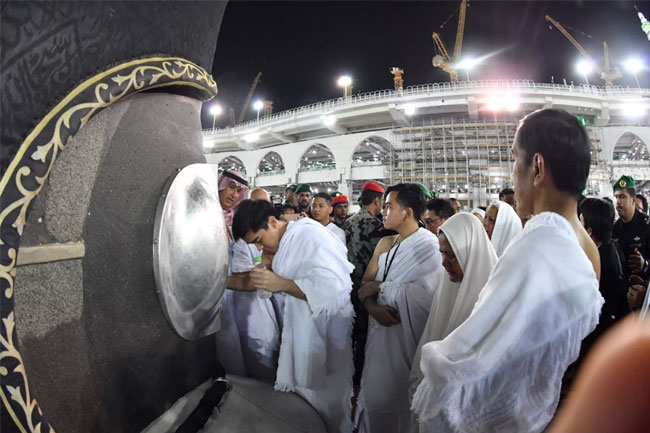 Makkah, Gatra.com - Presiden Joko Widodo (Jokowi) dan Ibu Negara Iriana Joko Widodo bersama kedua putranya Gibran Rakabuming Raka dan Kaesang Pangarep menunaikan ibadah umrah pada Senin pagi (15/4). Pada kesempatan itu, rombongan Jokowi berkesempatan masuk ke dalam kakbah.