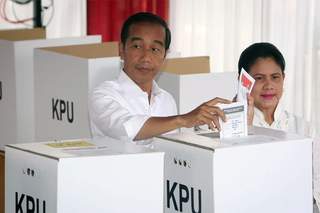 Setibanya di tempat pencoblosan, Jokowi dan istri sempat antre. Ia mendapat nomor urut 154, sementara Iriana memeroleh nomor 155.