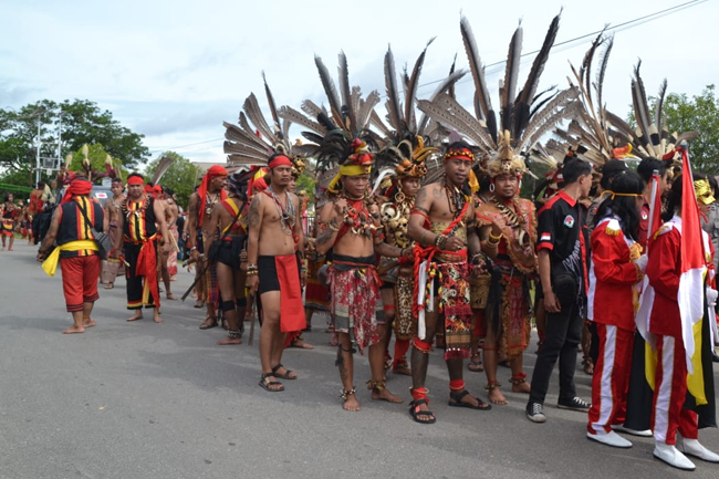 Landak, Gatra.com - Bupati Landak dr Karolin Margret Natasa secara resmi membuka karnaval pawai budaya Naik Dango yang diselenggarakan di Radakng Aya Ngabang, Jalan Stadion Patih Gumantar, Kota Ngabang, Kabupaten Landak, Kalimantan Barat, Jumat (26/4).