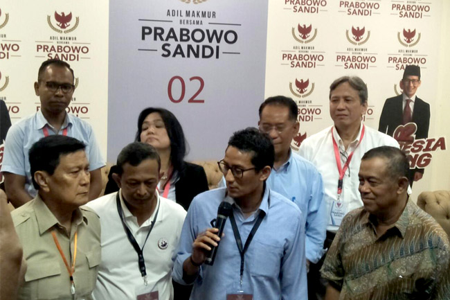 "Saya meyakini yang telah dilakukan oleh seluruh masyarakat, bukan hanya BPN untuk memastikan pemilu ini berjalan jujur adil dan bermartabat," tandas mantan Wakil Gubernur DKI Jakarta ini