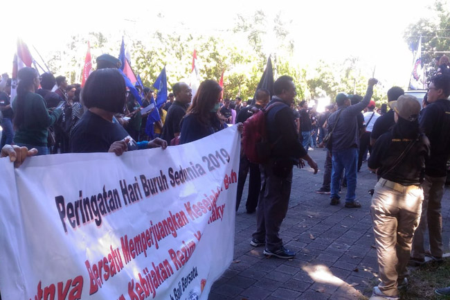 Lalu, miningkatkan pengawasan terhadap tenaga kerja asing, hentikan diskriminasi upah dan kerja, hentikan pelecehan seksual terhadap pekerja perempuan, berikan hak atas lapangan kerja disabilitas sesuai UU No8/2016 tentang penyandang disabilitas, berikan perlindungan terhadap pekerja di Bali.