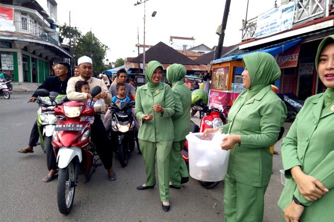 Kegiatan tersebut dipimpin Ketua Persit Kodim, Rima Arry Yudistira dan diikuti para pengurus Persit Kartika Chandra Kirana, yang bertakjub bagikan sedikit hartamu untuk kaum muslim yang membutuhkan dalam ramadan penuh ampunan dan berkah.