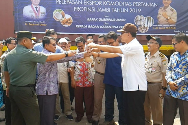 Gubernur Provinsi Jambi yang diwakil oleh Asisten II Sekretariat Daerah Provinsi Jambi, Agus Sunarya yang hadir dan melepas ekspor dalam acara tersebut menyampaikan bahwa potensi pertanian Jambi harus didukung dengan potensi sumber daya manusia agar mampu bersaing dan memberikan manfaat sebesar-besarnya untuk para petani dan pelaku usaha.