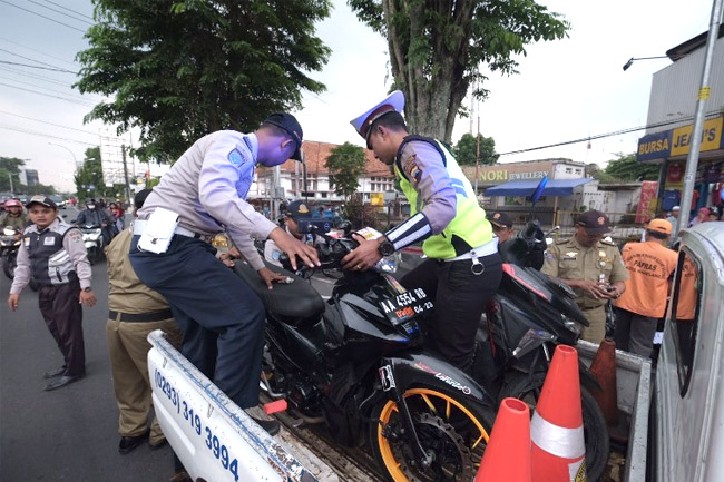 Pada operasi hari ini petugas mengangkut 2 unit sepeda motor yang parkir di trotoar Jalan Pemuda. Satu mobil ditilang di Jalan Tidar dan dua mobil serta 6 motor ditempeli stiker tanda melakukan pelanggaran.