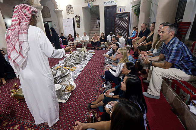 Banyak relawan Emirati yang berkumpul di sebuah majlis, ditanyai oleh wisatawan dan orang asing tentang kencan dan perkawinan, apa pendapat mereka tentang kode berpakaian Dubai yang relatif liberal untuk orang asing, serta aspek-aspek dari iman muslim.
