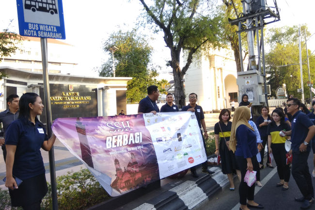 Sebanyak 200 anggota SSH dari 37 perwakilan hotel di kota Semarang berbaris di pinggir jalan untuk membagi-bagikan takjil. Bingkisan berupa makanan dan minuman mereka bagikan kepada pengguna jalan, baik yang mengendarai motor maupun pejalan kaki yang melewati jalan depan Balaikota.