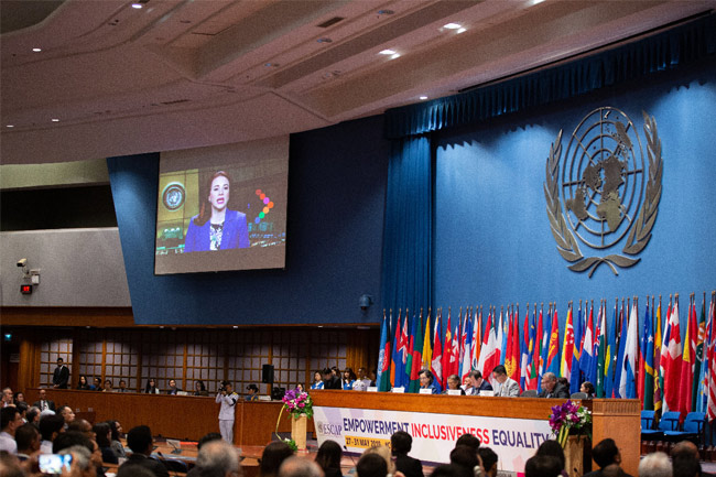 Delegasi dari pemerintah dipimpin oleh Kabag Regional Yusral Tahir yang bertemu dengan Sekretariat United Nations Economic and Social Commission for Asia and the Pacific (UNESCAP) di kantor pusat UNESCAP, Bangkok, Thailand.