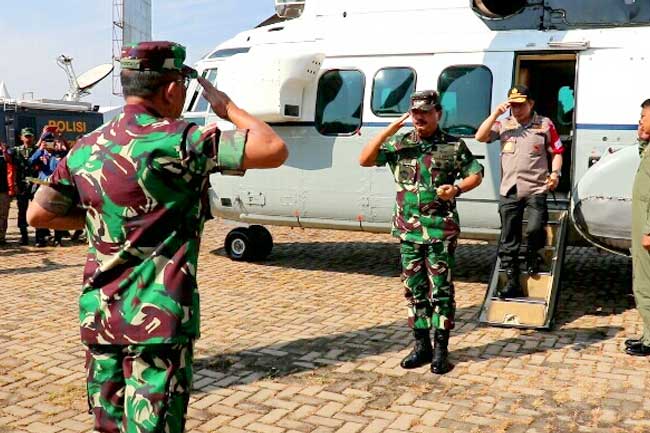 Bertolak dari Lanud Halim Perdanakusuma, Panglima TNI beserta rombongan menggunakan Heli Super Puma milik TNI disambut oleh Gubernur Jawa Barat Ridwan Kamil di Posko Terpadu Cikopo, Jumat (31/5).