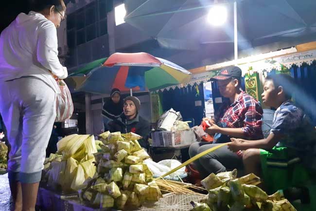 "Daun ketupat saya sudah habis sejak siang tadi. Yang ada ini, sudah dipesan orang. Nanti mau diambil sebelum waktu berbuka puasa," terangnya.