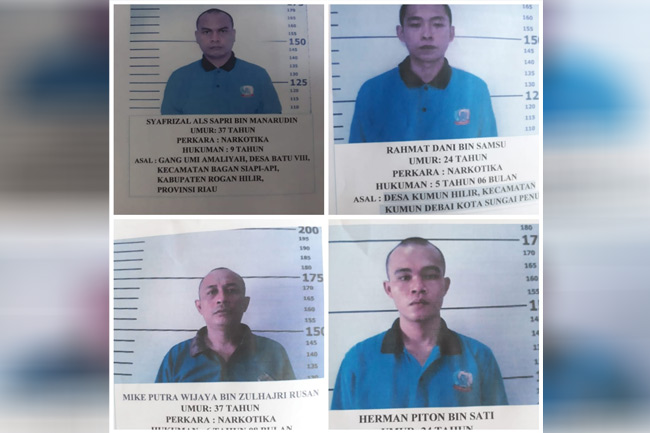 Berikut ini identitas dan jejak kasus empat napi tersebut. Yang pertama adalah Syafrizal (35), Warga Desa Batu VIII, Kecamatan Bagan Siapi-api, Kabupaten Rokan Hilir Riau, ditangkap oleh Satres Narkoba Polres Kerinci pada 2017 lalu. Dia ditangkap di rumah temannya di Desa Koto Kapeh, Kecamatan Gunung Kerinci, Kabupaten Kerinci.
