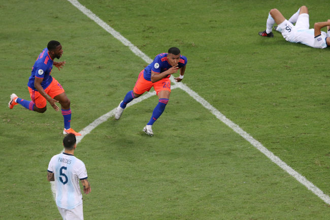 Rekan pengganti Duvan Zapata menambah yakin bahwa Kolombia akan mencatat kemenangan pertama mereka atas Argentina sejak 2007 dengan menerkam dari jarak dekat untuk mengetuk umpan silang dari Jefferson Lerma 15 menit kemudian.