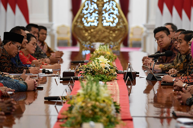 “Saya ingi mendengar masukan-masukan dari para pelaku UMKM, dalam rangka mendesain kebijakan, terutama yang terkait dengan usaha mikro kecil menengah,” kata Jokowi saat menerima kedatangan pelaku UMKM di Istana Merdeka, Jakarta, Selasa, (18/6).