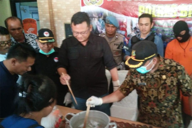 "Barang bukti senilai hampir Rp1 miliar itu dimusnahkan dengan cara melarutkannya di dalam wadah berisi air panas, yang selanjutnya akan dibuang ke saluran pembuangan," kata Nendra.