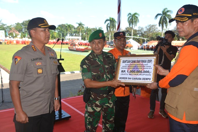 Komandan Korem 044/Gapo Kolonel Arh Sonny Septiono selaku Komandan Satuan Tugas (Dansatgas) menyatakan pihaknya terus mengkordinasikan seluruh sumber daya yang dimiliki guna mencegah terjadinya karhutla tahun ini.