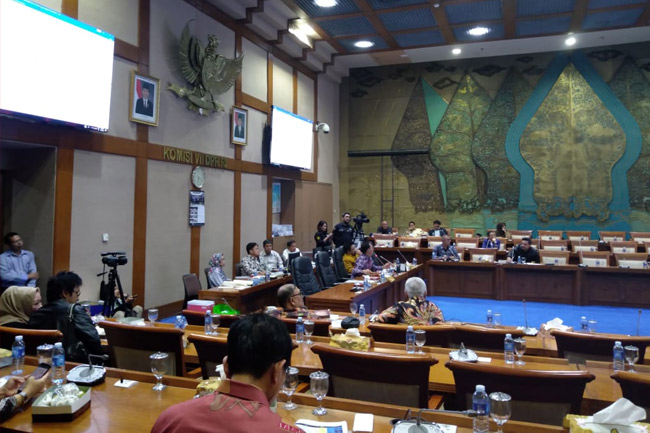 Jakarta, Gatra.com - Kementerian Energi dan Sumber Daya Mineral (ESDM) beserta Komisi VII DPR RI membahas penguatan untuk Dewan Energi Nasional (DEN), pada rapat kerja di DPR RI, Jakarta, Senin (15/7).