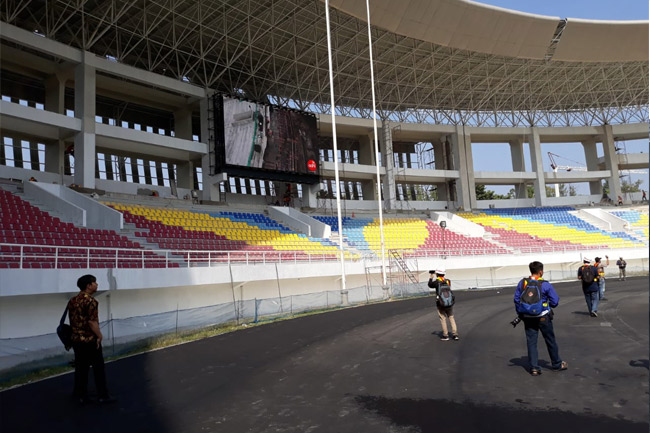 Sisi utara dan selatan stadion dipasangi layar LED sebagai papan skor. Kamera CCTV stadion terkoneksi dengan layar ini. ”Kami juga menyediakan musala dan toilet di setiap tribun. Ada 8 ticket box dan empat pintu masuk utama,” jelasnya.