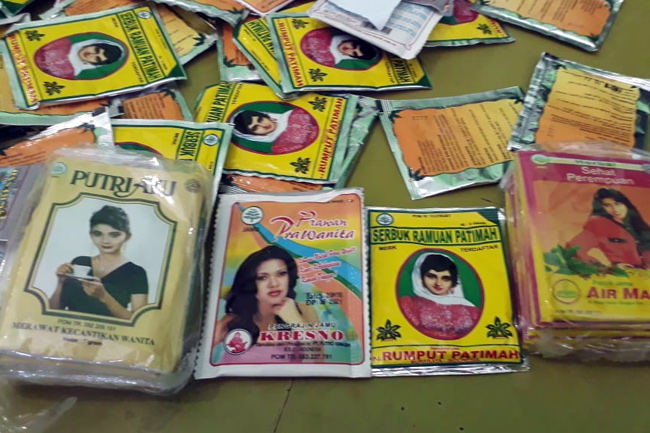 Di antara ratusan bungkus jamu itu, lanjut Jamal, terdapat minyak urut pria, jamu rumput fatimah, putri ayu serta berbagai produk kewanitaan.
