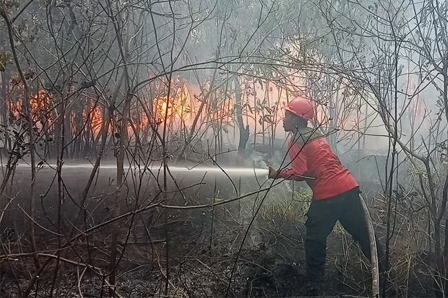 Ia berujar kebakaran dalam wilayah RT 6 Desa Simpang Karmeo, Kecamatan Batin XXIV mencapai 11 hektar. Upaya pemadaman dilakukan Tim Manggala Agni dan BPBD Kabupaten Batanghari.