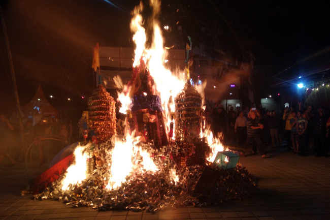 Ritual mengarak Sembahyang Tee Soe sudah dimulai sejak Kamis (15/8) siang dengan membakar Raja Setan dan rebutan sesajian oleh masyarakat sebagai puncak ritual Sembahyang yang digelar di perkampungan Cina, Kota Tua, Padang.