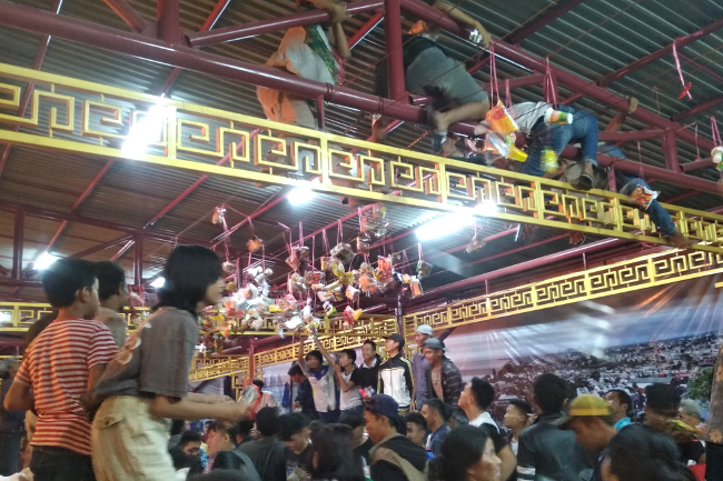 Patung Raja Setan yang sudah diletakkan di tengah-tengah halaman klenteng lama See Hin Kiong dikelilingi dengan uang arwah yang terdiri atas Kim Cua (Kertas Emas) digunakan untuk upacara sembahyang kepada dewa-dewa dan Gin Cua (Kertas Perak) untuk upacara sembahyang kepada para leluhur dan arwah-arwah orang yang sudah meninggal dunia.
