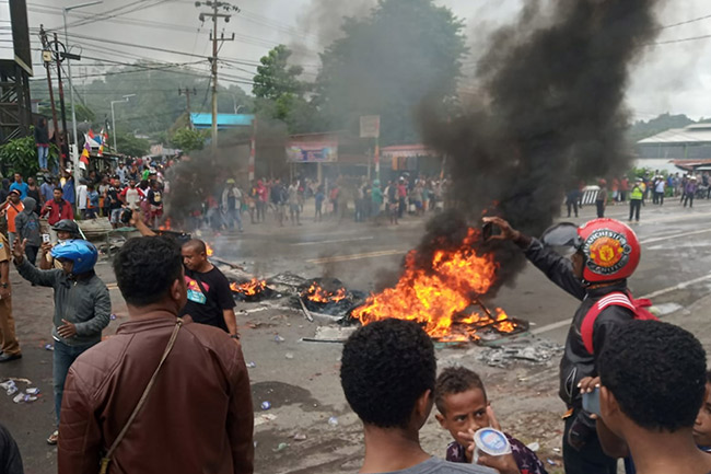 Sejumlah ruas jalan di Manokwari, terutama Jalan Yos Sudarso yang merupakan jalan utama Kota Manokwari diblokade massa yang mengakibatkan aktivitas masyarakat maupun arus lalu lintas lumpuh.