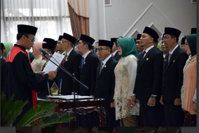 Banyumas, Gatra.com - Sebanyak 50 anggota Dewan Perwakilan Rakyat Daerah (DPRD) Banyumas, Jawa Tengah periode 2019-2024 mengikuti prosesi pelantikan dan pengambilan sumpah jabatan, pada Selasa (20/8). Mereka berasal dari 9 partai politik Pemilihan Umum 2019.