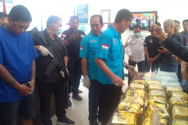 Palembang, Gatra.com - Badan Narkotika Nasional (BNN) Provinsi Sumatera Selatan (Sumsel) berhasil mengamankan 20 kg sabu dan 18.800 butir pil ekstasi asal Malaysia.