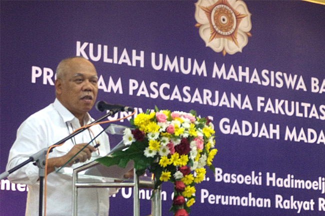 Basuki hadir di kampus UGM untuk memberi kuliah umum bagi mahasiswa Program Pascasarjana di Fakultas Teknik UGM yang juga almamaternya.