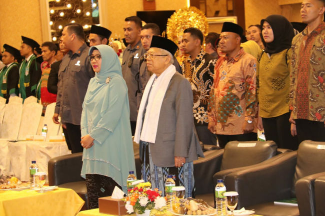 Didampingi istrinya Wury Estu Handayani, dia mengaku sampai saat ini masih menjabat sebagai Ketua Umum MUI Pusat sampai nanti dilantik menjadi Wapres Oktober mendatang. Untuk itu dia mengajak para ulama berada pada jalur tugas utama nya yakni melaksanakan tanggungjawab keagaman, kebangsaan dan kenegaraan.