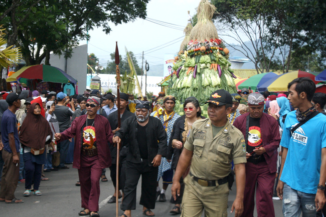 "Istilahnya ngalap berkah atau berebut berkah dari hasil panen. Mengalap berkah ini dipercaya bakal mendatangkan rejeki. Prosesi ngalap berkah itu buah dan sayur yang didapat pada saat rebutan akan dibawa pulang untuk dikonsumsi. Kalau dapat biji atau benih maka ditanam lagi agar menghasilkan panen yang melimpah," ujarnya, Jumat (30/8).