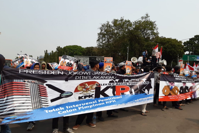 "Dari awal kami meminta dalam pemilihan Capim KPK tidak boleh ada intervensi dari pihak manapun. Pansel sudah bekerja maksimal, terbuka, dan mendengarkan semua aspirasi, jangan kambinghitamkan lagi dan dikriminalisasi," tegas koordinator aksi, Ahmad.