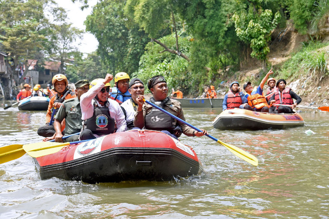 Medan, Gatra.com – Gubernur Sumatera Utara (Sumut) Edy Rahmayadi menelusuri Sungai Deli di Medan bersama dengan Wakil Walikota Medan, Akhyar Nasution. Kegiatan yang dilakukan, Selasa (10/9) tersebut guna melihat kondisi sungai guna melihat kondisi sungai dan pemukiman masyarakat di sekitar sungai.