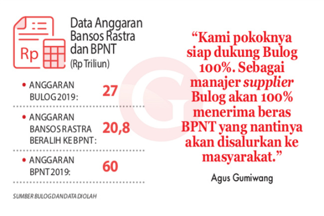 Dalam hal ini, Buwas menyebut pihaknya memang sudah menerima surat edaran dari Kementerian Sosial (Surat Edaran Menteri Sosial 01/MS/07-2019) untuk menyalurkan beras bagi program BPNT. “Sudah ada edarannya menteri. Pak Presiden dan Wapres pun sudah menegaskan. Yang belum ikhlas ini oknum-oknum di lapangan, yang selama ini mendapat keuntungan dari kegiatan ini,” ia menegaskan. Pihak yang belum ikhlas ini, Buwas melanjutkan, adalah oknum-oknum di lapangan, baik dari oknum dinas sosial maupun oknum mana-mana. Mengapa? Karena mereka terbiasa mendapat fee dari kegiatan ini.