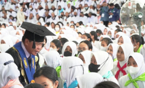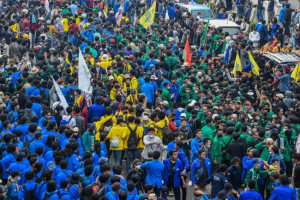 "Satu perjuangan, tak bisa dikalahkan! Hidup mahasiswa!" seru massa tiada henti.