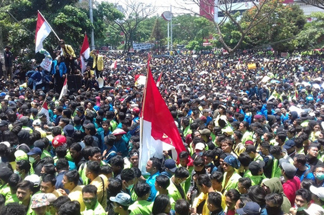 Semarang, Gatra.com-Ribuan mahasiswa tergabung dalam Aliansi Semarang Raya turun ke jalan mengepung Gedung DPRD Jateng dan Kantor Gubernur Jateng di Jalan Pahlawan Kota Semarang, Selasa (24/9).