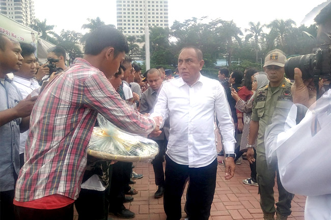 "Kalau di Sulawesi Selatan itu, TNI ikut bantu memanfaatkan lahan kosong. Mereka tanam padi, jagung dan kedelai. Itu KODAM yang kerjakan. Kalau polisi urus soal daging. Seandainya Sumut bisa begitu, bisa swasembada kita," kata Edy.