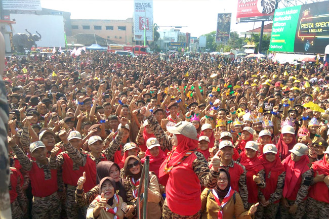 Ketua Pramuka Kwartir Cabang Kota Bandar Lampung Eva Dwiyana menyampaikan pentingnya menjaga NKRI dalam mengisi pembangunan. "Dengan kita bersatu kita menjaga NKRI, kita lanjutkan pembangunan, Kota Bandar Lampung akan selalu memberi motivasi kepada adek-adek Pramuka untuk mengisi pembangunan, target Rekor Muri 25.000 peserta semoga tercapai pada pagi hari ini " ujar Eva Dwiyana.