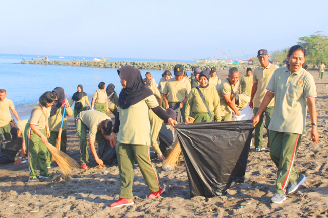 Pembersihan pantai yang diikuti seluruh PNS jajaran Korem 162/WB se Garnizun Mataram, PNS Lanal Mataram dan PNS Lanud ZAM Rembiga sebelumnya melaksanakan anjangsana ke rumah pensiunan dan keluarga PNS.