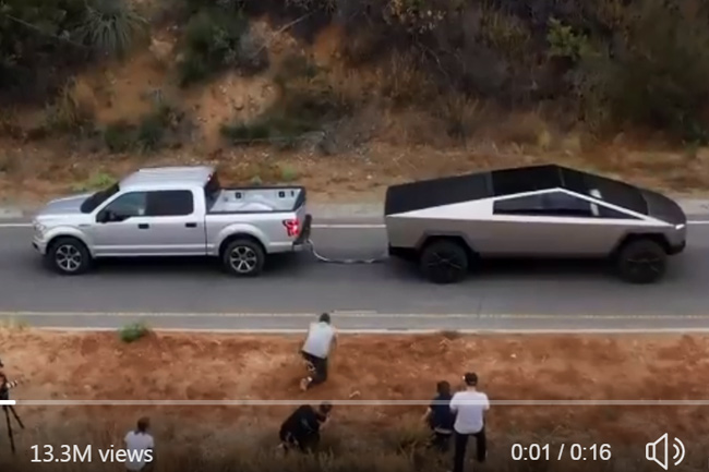 Dalam video yang lain, Ford membawa prototipe F-150 listrik ke halaman kereta api dan menarik 42 buah F-150 yang dimuat pada 10 gerbong kereta bertingkat. Ford bermitra dengan pesaing Tesla lainnya, Rivian, untuk megembangkannya menjadi kendaraan listrik.