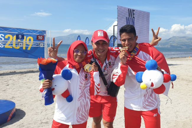 Kedua medali emas itu berasal dari Muhammad Taufik bin Munir dan Dea Salsabila yang turun di nomor Men's Beach Laser Run dan Women's Beach Laser Run.