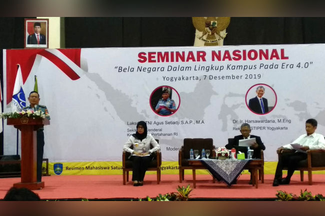 Hal ini disampaikan Agus saat menjadi pembicara kunci dalam seminar ‘Bela Negara dalam Lingkup Kampus pada Era 4.0’ yang diselenggarakan di Institut Pertanian Stiper (Instiper) Sleman, Sabtu (7/12).