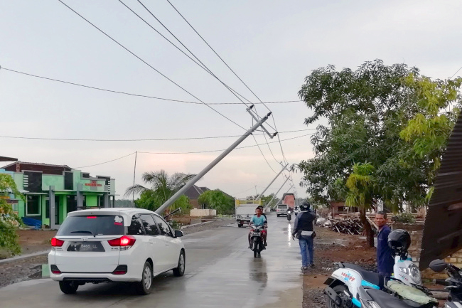 "Angin kencang sekali, tiang miring itu jam 12.30 WIB. Saya langsung masuk ke dalam rumah karena takut," ujar wanita pemilik warung makan itu.