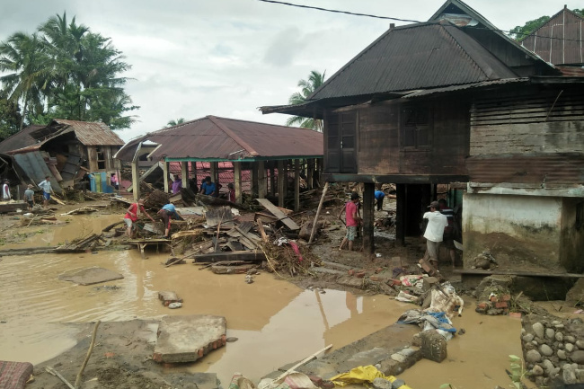 Bencana banjir bandang tidak hanya mengakibatkan jembatan mengalami kerusakan, namun juga mengakibatkan puluhan rumah warga roboh terbawa arus sungai sekaligus kerusakan pada fasilitas umum lainnya.