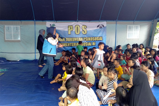 Layanan ini menjadi salah satu sarana bagi anak-anak yang mengungsi agar tidak terguncang jiwanya atau mengalami stres. Pemulihan secara psikososial ini sudah dilakukan sejak hari pertama bencana banjir terjadi.