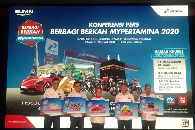 Program Berbagi Berkah MyPertamina 2020, selain mobil mewah Porsche Boxster, ada motor BMW, motor Ducati dan motor Triumph. Ada juga puluhan pasang paket umrah (wisata religi), puluhan pasang paket wisata ke Eropa dan kiloan emas batangan dapat diperoleh konsumen Pertamina dengan hanya mengunduh aplikasi MyPertamina.