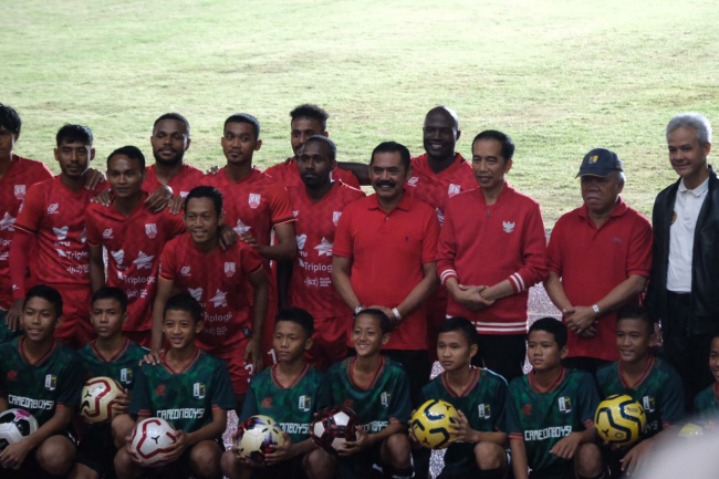 Solo, Gatra.com - Stadion Manahan Solo diresmikan Presiden Joko Widodo, Sabtu (15/2). Stadion yang direnovasi dengan anggaran Rp 301 miliar ini rencananya akan digunakan sebagai salah satu venue dalam Piala Dunia U-20 pada tahun 2021 mendatang.