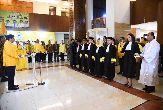 Airlangga mengatakan dengan pengucapan sumpah tersebut, Mahkamah Partai telah memenuhi semua persyaratan untuk melaksanakan tugas, wewenang dan tanggung jawab untuk memeriksa, mengadili dan memutus sengketa perselisihan di internal Partai Golkar.