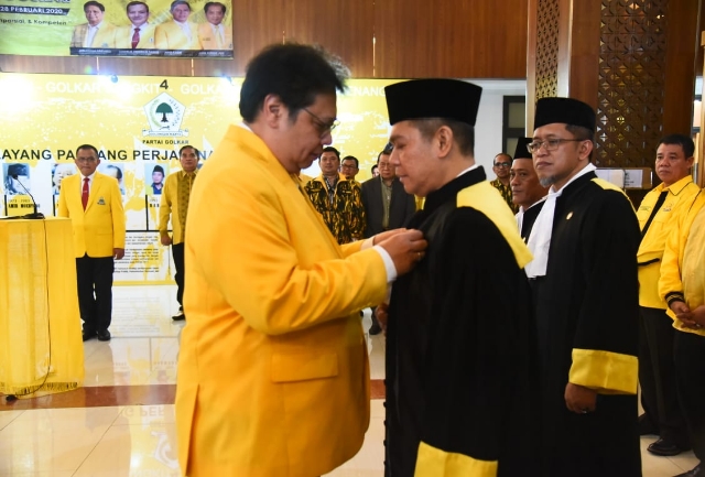 Jakarta, Gatra.com - Ketua Umum (Ketum) DPP Partai Golkar Airlangga Hartarto melantik dan mengambil sumpah tujuh Hakim Mahkamah Partai Golkar periode 2019-2024. Pengambilan sumpah ini dilakukan di Kantor DPP Golkar, Jalan Anggrek Nelly, Slipi Jakarta Barat, Jumat malam (28/2).