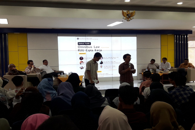 Sebelumnya, di sela diskusi, Dewan Mahasiswa Fisipol UGM membacakan kritik atas omnibus law. Selain keberatan soal transparansi pembahasnnya, Dema Fisipol UGM juga menyebut, berdasarkan survei di kampus, kebanyakan pekerja di kampus tak tahu soal omnibus law. Sementara banyak mahasiswa hanya tahu RUU itu untuk memangkas izin dan melancarkan investasi.