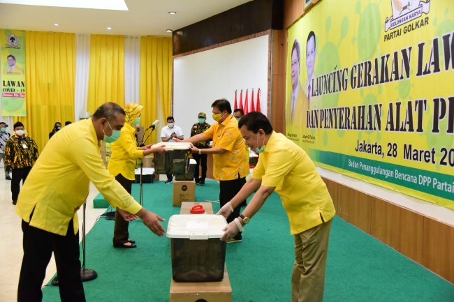 Ketua Umum DPP Partai Golkar, Airlangga Hartarto saat launching mengatakan penyaluran alat pelindung diri (APD) dan alat kesehatan (alkes) melalui ormas yang didirikan oleh Partai Golkar serta DPD Partai Golkar tingkat Provinsi seluruh Indonesia.